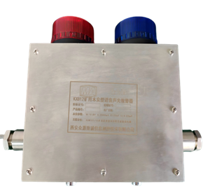 通过声音和各种光来向人们发出示警信号的一种报警信号装置。对井下明渠、水仓以及管道进行监测,水位以及流量达到设定的预警值或者发生其他紧急情况时,报警控制器送来的控制信号启动声光报警电路,发出声和光报警信
